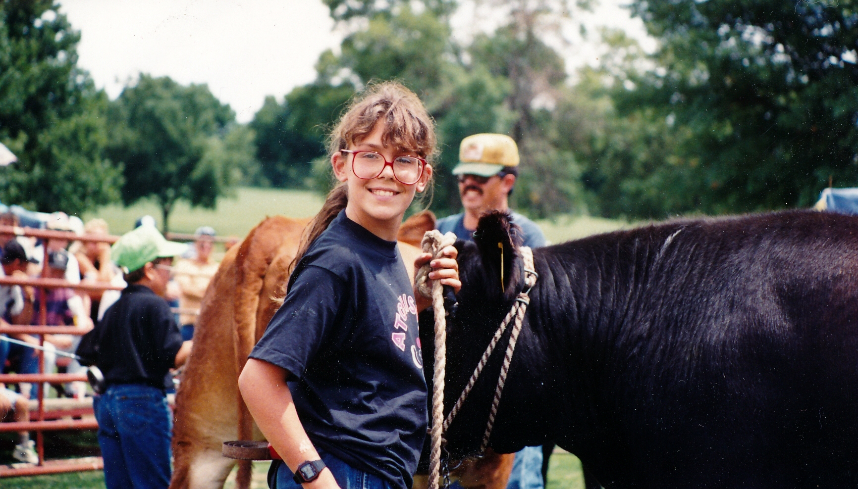 When Lee and Ann and Ben showed animals for 4H and then FFA, the barns were full with up to 70 steers and one year, on top of 200 hogs. Six or seven Hurst cousins worth of cattle did contribute to the bounty. Today's show ring features a solid representation of pigs, a pampered lovely handful of steers, sheep, goats,and a rainbow's worth of rabbits and chickens in arms. Farms have changed in our county, but the faces of the parents watching from the barn, the fence, or the stands are ever the same: focused and intent, alert to the bidders and the auctioneer, poised to offer advice and encouragement to the showman in the ring.